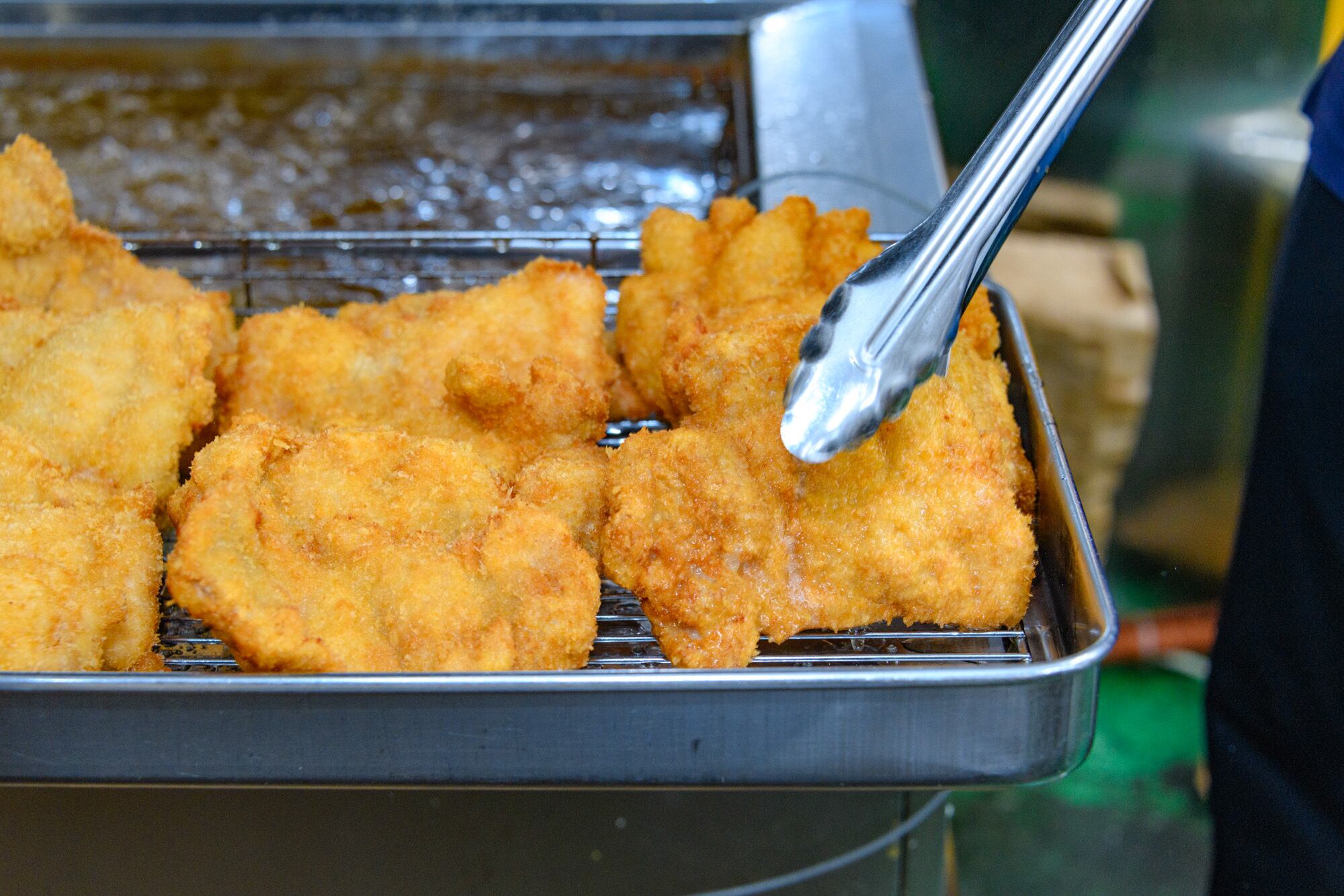 主役のよき「相棒」パンチの効いたガーリックが特徴の「骨なしチキン」です。お肉をやわらかく仕上げるために下味をゆっくり染み込ませ、揚げる直前でニンニクを混ぜることや「こめ油」ブレンドの油で、ちょっと難しい油分の粒子を細かく揚げるテクノロジーを積み重ねることで外は「さくさく」中は「じわじわ」に仕上げております。強めニンニクの「香り」はご愛敬です。公共交通機関にお持ち込みの際はお気を付けください。